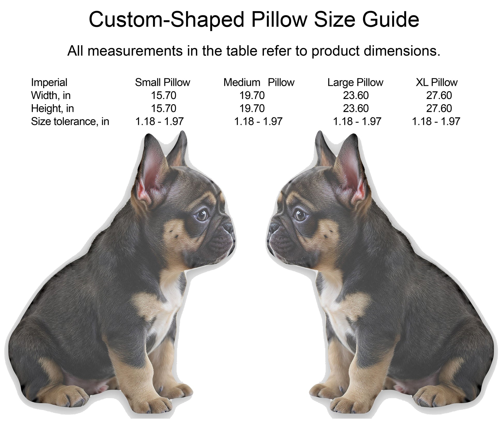This Cute French Bulldog Puppy Custom Shaped Pillow is a cozy and adorable addition to any dog lover's home decor. Perfect for snuggling up with on the couch or using as a decorative accent in a bedroom. Ideal gift for animal lovers, pet owners, or anyone who appreciates cute and unique home accents. Great for birthdays, holidays, or any special occasion.